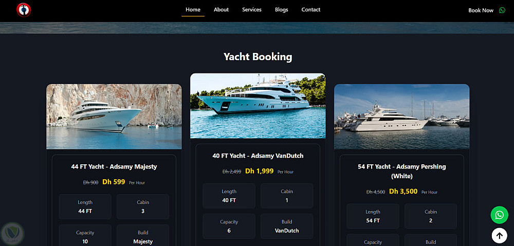 الموقع يتيح للمستخدمين استعراض اليخوت، اختيار الرحلات، وإتمام الحجز بسهولة من خلال واجهة أنيقة ومتجاوبة مع جميع الأجهزة.