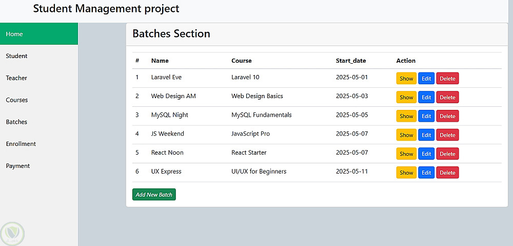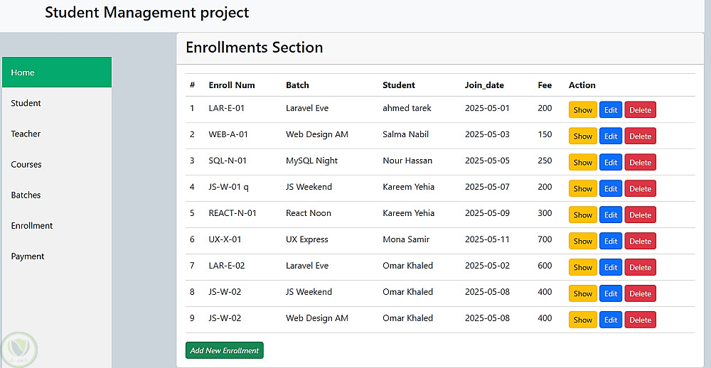 Student Management System هو مشروع ويب متكامل لتسهيل إدارة بيانات الطلاب والمعلمين والدورات الدراسية.
