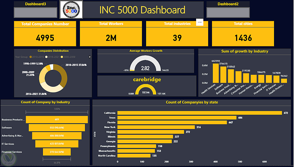 نفذت مشروعًا متكاملًا لتحليل تقارير Inc.5000 التي تضم أكثر من 5,000 شركة و 2 مليون موظف عبر 39 صناعة في الولايات المتحدة، بهدف فهم اتجاهات النمو وأداء الشركات خلال الفترة من 1976 إلى 2021 وخاصة تأثير جائحة كوفيد-19.
