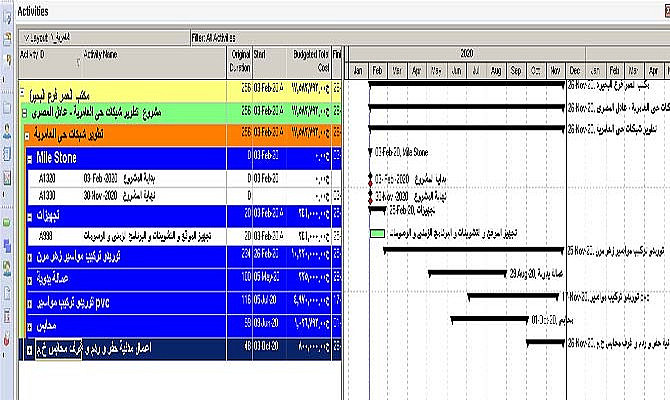 تصميم برنامج زمنى لمشروعك و حساب و الموارد و حساب التكاليف والموارد المتاحة توزيعها على مدة المشروع حسب الموارد المتاحة ليتم فى الوقت المحدد لة بطريقة المسار الحرج و تحديد اللانشطة الحرجة و السيطرة على الانفاق على المشروع حسب المحدد له حتى يحقق اعلى قيمة مكتسبة باقل تكاليف ب برنامج primavera 6