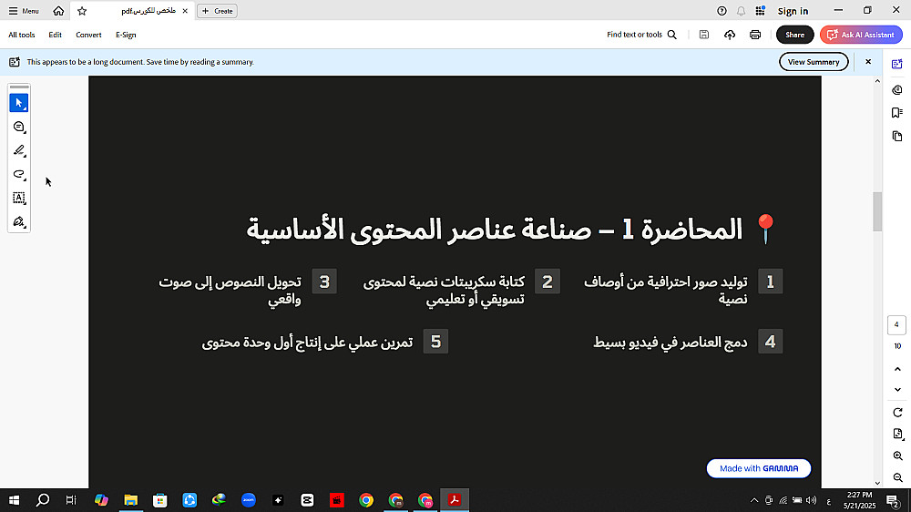 المحاضرة مصممة لتجعلك تنتقل من مجرد مستخدم لأداة، إلى صانع محتوى محترف يستغل إمكانيات الذكاء الاصطناعي بأفضل شكل.