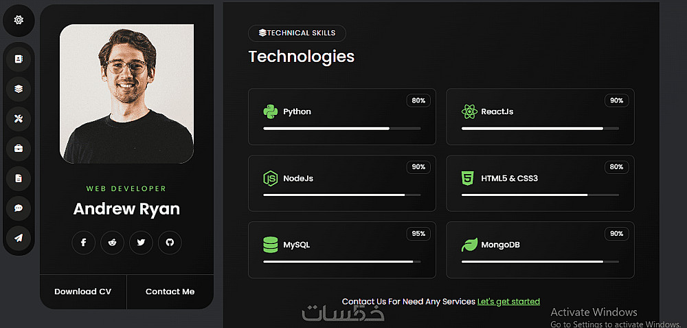 احصل على بورتفوليو تفاعلي مصمم خصيصًا لك باستخدام HTML, CSS, JavaScript، يعكس مهاراتك وخبراتك باحتراف، ويجعلك مميزًا بأسلوب عصري وجذاب.