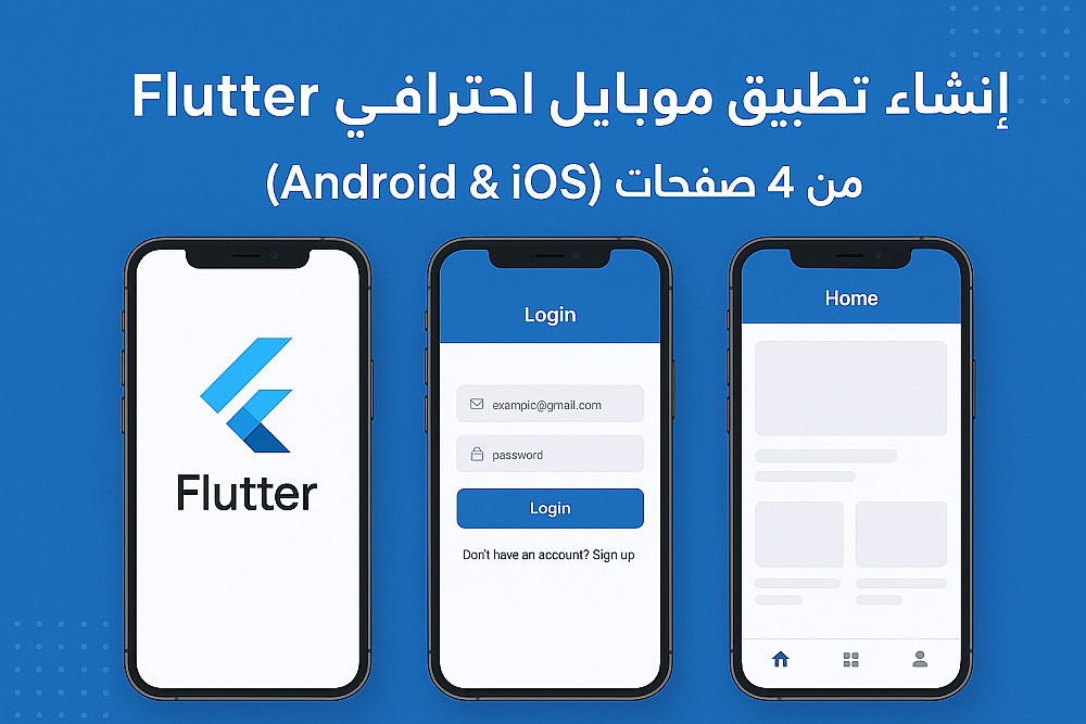 إنشاء تطبيق موبايل احترافي بـ Flutter من 4 صفحات (Android & iOS)
