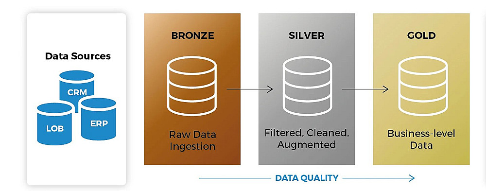 تصميم طبقات المستودع (Bronze / Silver / Gold).
