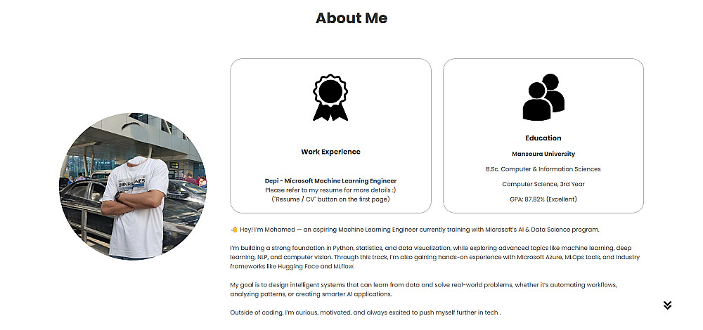 هعملك موقع بورتفوليو شخصي من صفحة واحدة (1–3 أقسام رئيسية) + نسخة PDF منسقة تعرض أعمالك ومهاراتك بطريقة تسيب انطباع قوي.