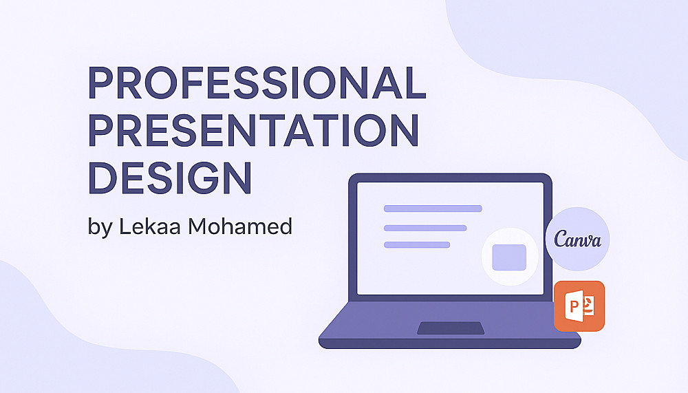 سأقوم بتصميم عرض تقديمي (Presentation) احترافي باستخدام PowerPoint أو Canva بتصميم عصري جذاب يعكس فكرتك بوضوح ويساعدك على إقناع جمهورك.
