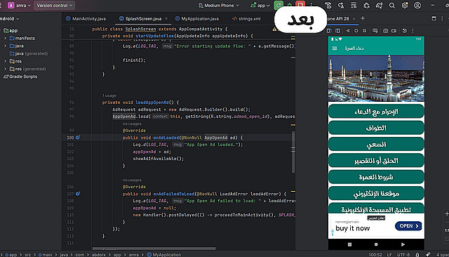 أنا هنا لمساعدتك في اكتشاف الخطأ وإصلاحه بسرعة واحترافية باستخدام برنامج (Android Studio).