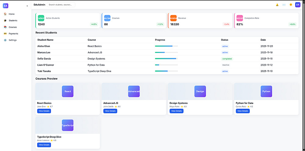إنشاء Dashboard احترافية باستخدام React مع تصميم متجاوب وديناميكي
