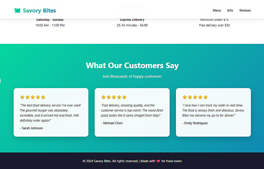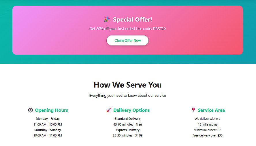 الصفحة ستكون مصممة لتسهل على الزائر اتخاذ قرار سريع وتشجعه للتفاعل مع المطعم.