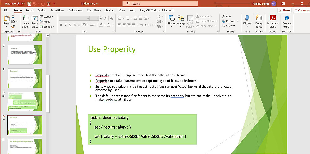 PowerPoint: إعداد عروض تقديمية حتى 10 شرائح، منظمة وسهلة القراءة، مع تصميم بسيط وواضح.