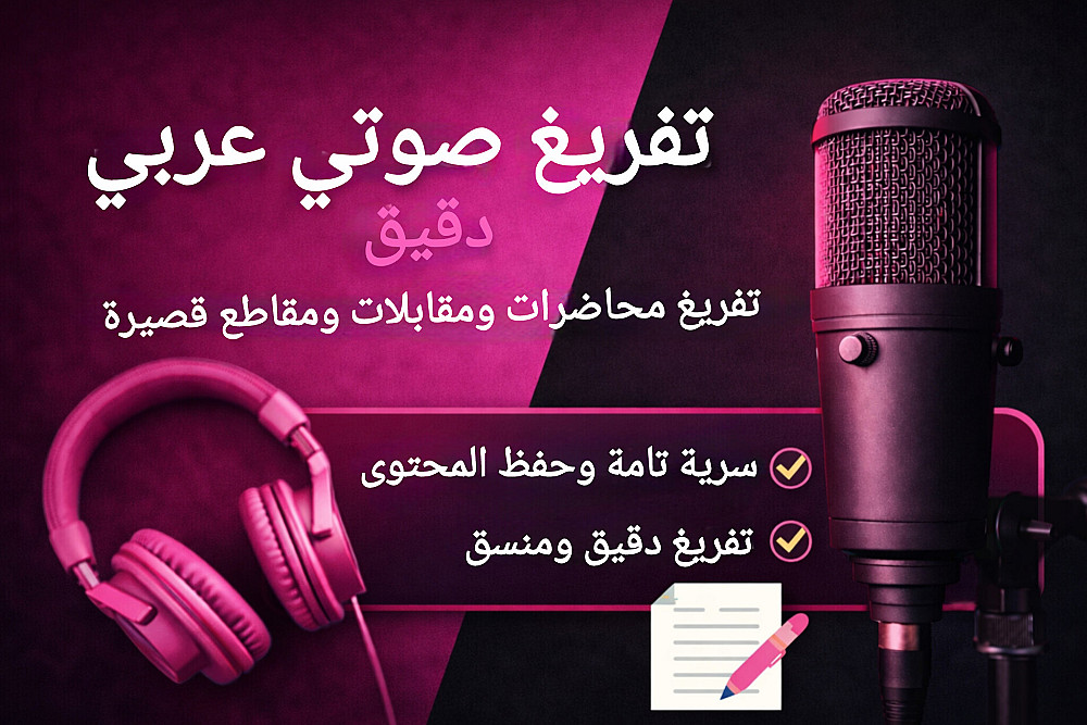 أقدّم خدمة تفريغ صوتي عربي للملفات القصيرة بدقة واهتمام بالتفاصيل، مع الالتزام بتنسيق النص بشكل واضح وسهل القراءة.