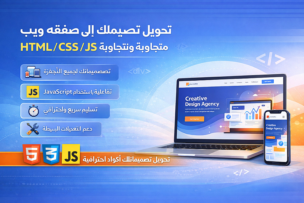 تحويل تصميمك من Figma / Photoshop إلى صفحة ويب HTML/CSS/JS متجاوبة وتفاعلية