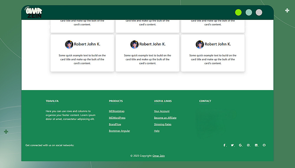يتم تنفيذ الصفحة بتصميم عصري ومتناسق، مع الاعتماد على Bootstrap لضمان التجاوب الكامل مع جميع الأجهزة وسهولة التصفح، مما يساعد على توصيل الفكرة وزيادة التأثير.
