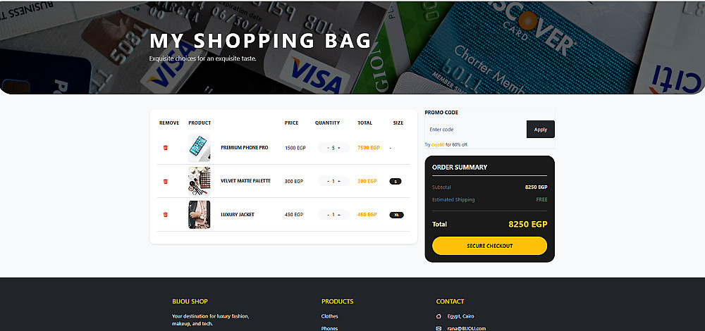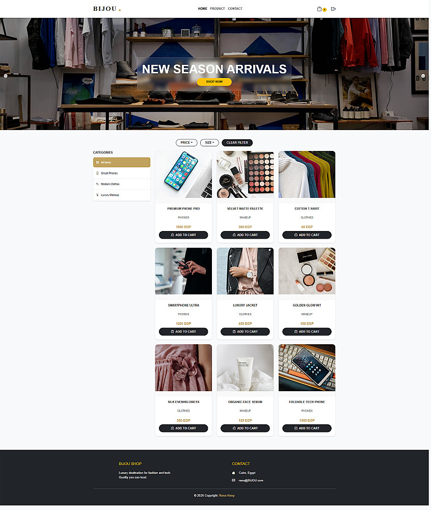 تصميم الهوية البصرية: تخصيص الألوان والخطوط لتناسب براند "BIJOU" لضمان مظهر فاخر وموحد.