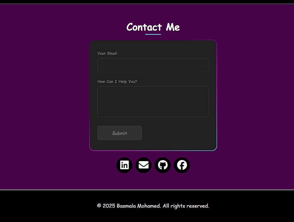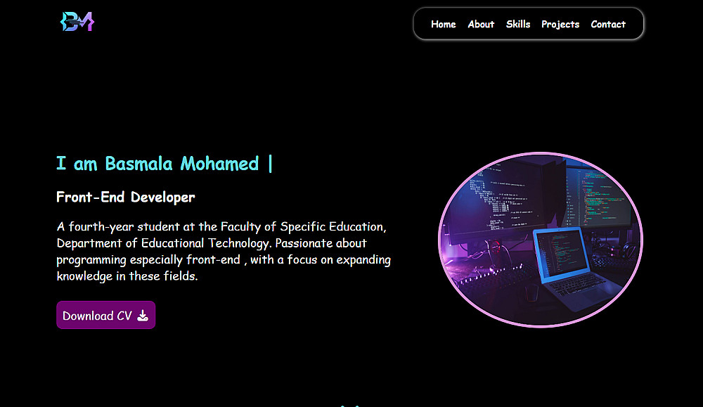 HTML – CSS – JavaScript، بتصميم عصري ومتجاوب مع جميع الشاشات، يساعدك على عرض مهاراتك وأعمالك بشكل جذاب ومرتب.