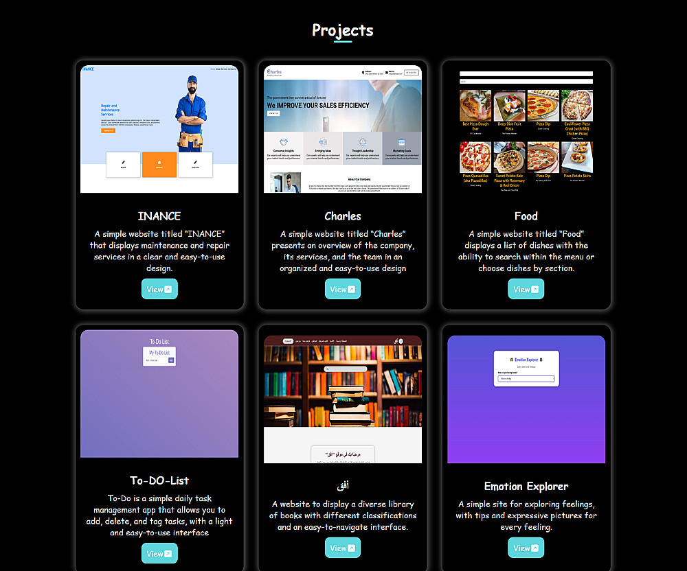 Projects: استعراض مشاريعك السابقة مع وصف مختصر لكل مشروع.