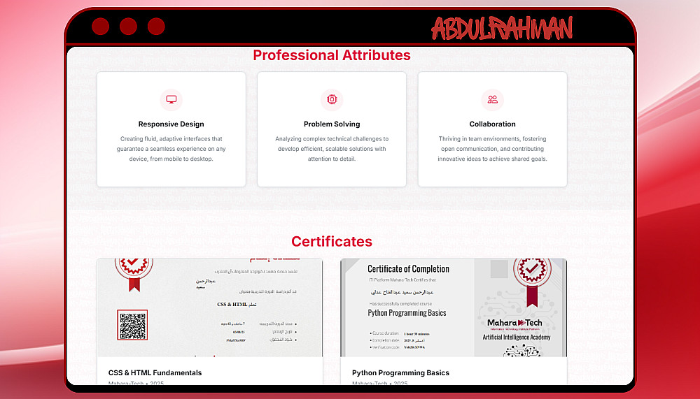 هل ترغب في امتلاك Portfolio Website يعكس مهاراتك ويقدّمك بصورة احترافية أمام العملاء وأصحاب العمل؟
