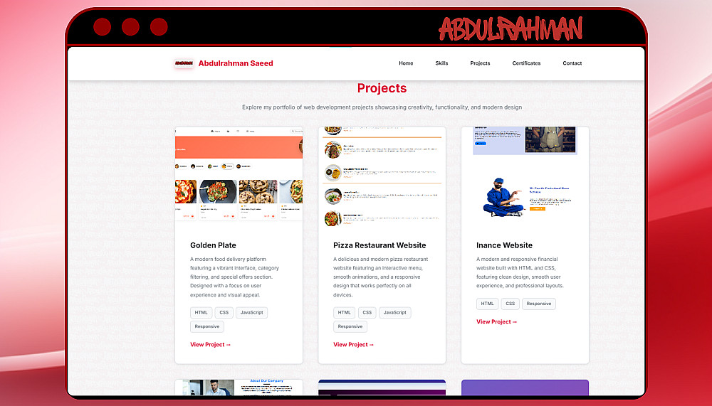 سأقوم بإنشاء Responsive Portfolio متوافق مع جميع الأجهزة، سريع التحميل، ويمنح الزائر تجربة مستخدم User Experience سلسة ومميزة، ليترك عنك انطباعاً قوياً من أول زيارة.