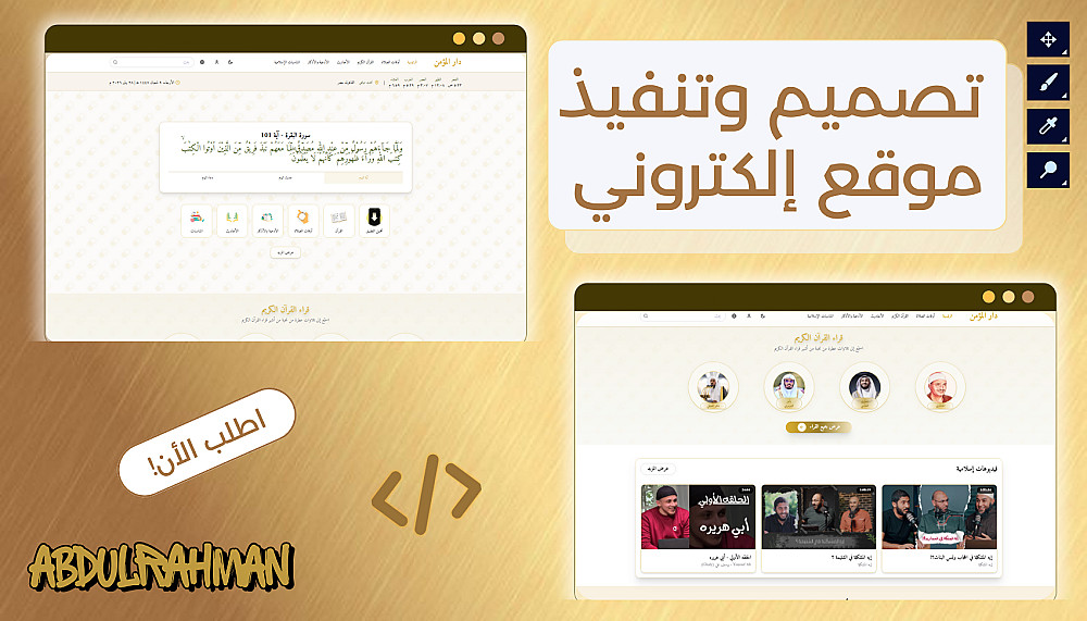 أنا أقدّم خدمة تصميم وتطوير Full Website بمظهر عصري وتجربة مستخدم ممتازة، ليكون موقعك نافذة قوية على الإنترنت أمام الزوار والعملاء.