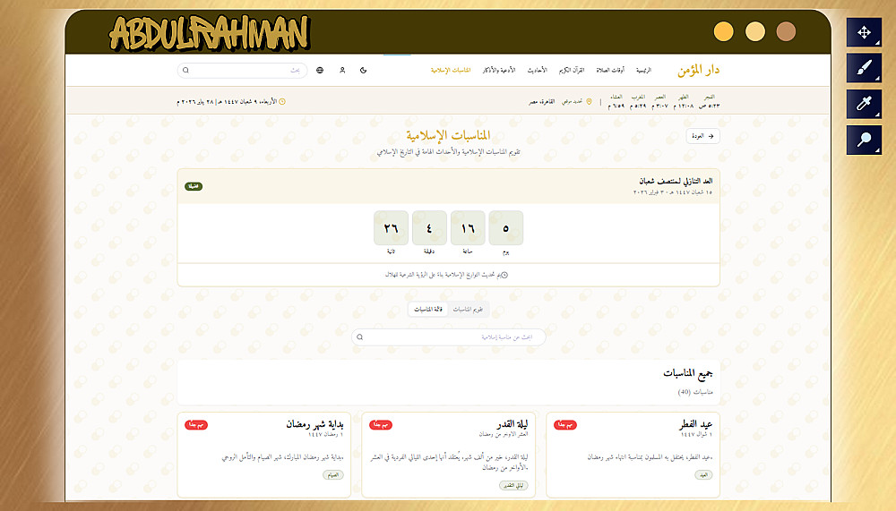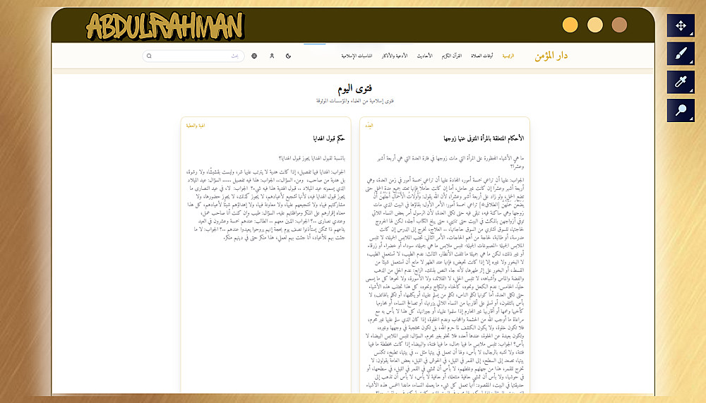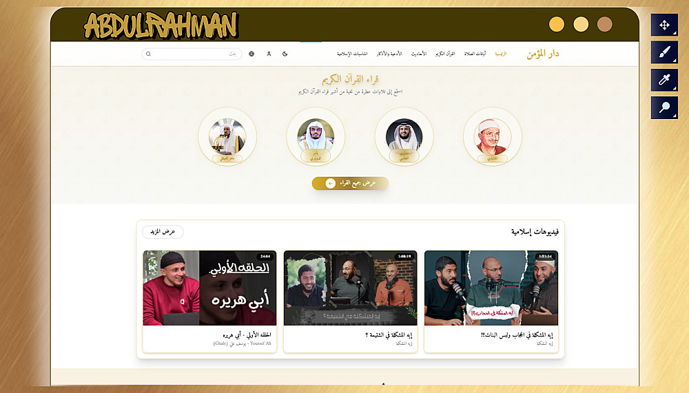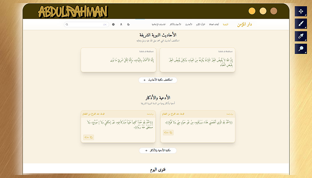 ⦿ أقسام متخصصة حسب محتوى موقعك (مثل: القرآن الكريم، الحديث الشريف، خدمات، معلومات…)