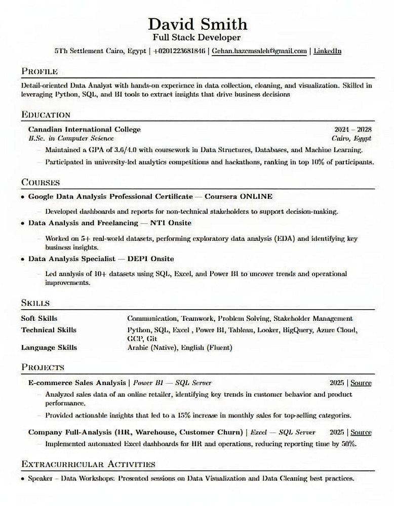 سيره ذاتيه احترافيه بواسطه البرمجه لل ATS