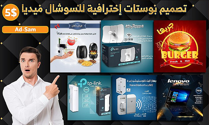 سأقوم بتصميم بوست احترافي يجعل اعلانك مميز يساعدك على ترويج منتجاتك ويجذب المشاهدات والاعجابات، مقابل 5$ لتصميم البوست الواحد.
