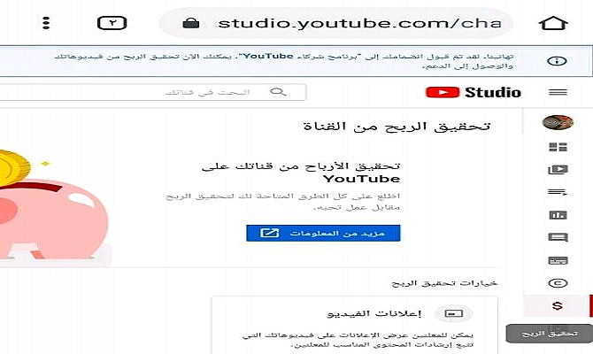 سوف أقوم بتفعيل الربح لقناة اليوتيوب الخاصة بك