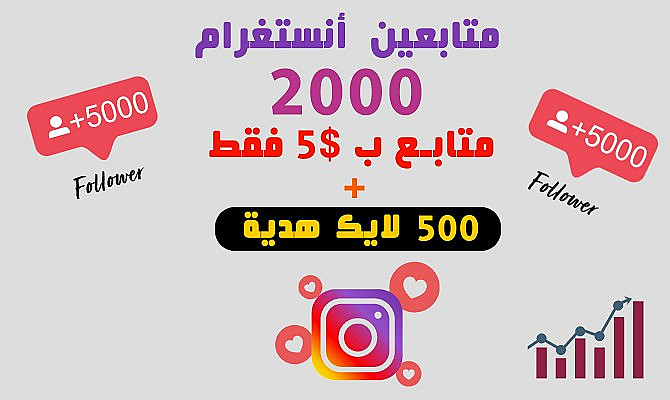 سأقوم بأضافة لك 2000 متابع انستجرام + 500 لايك هدية مع ضمان عدم النقص