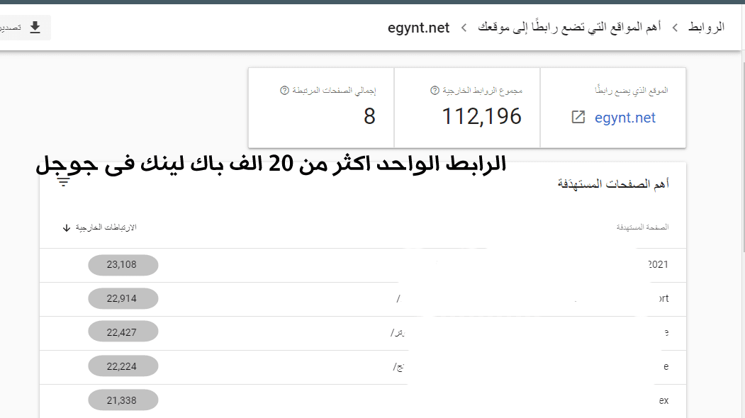 صورة من احصائيات الباك لينك فى جوجل كونسل