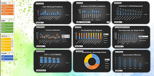 تحليل بيانات لملف إكسل يحتوي على 500 صف وتصميم لوحة تحكم بسيطة تحتوي ع ...
