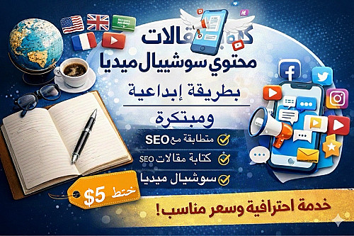 سأقوم بكتابة مقالات سوشيال بطريقة احترافي مكوّن من 500 كلمة مقابل 5 ...