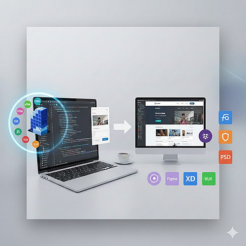 تحويل تصاميم Figma و XD إلى كود HTML/CSS/JS متجاوب (Pixel Perfect)