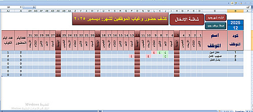 شيت اكسيل بواجهة مستخدم لحضور وغياب يصلح للموظفين والطلاب